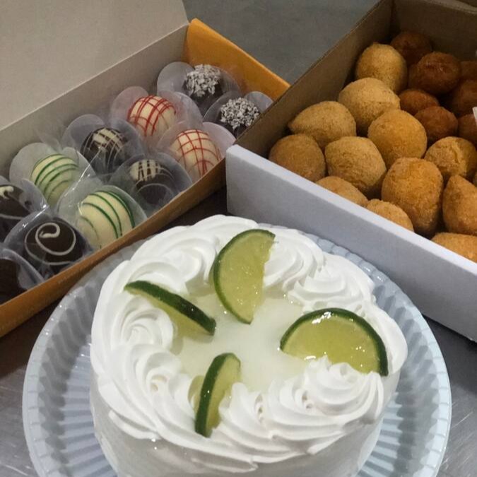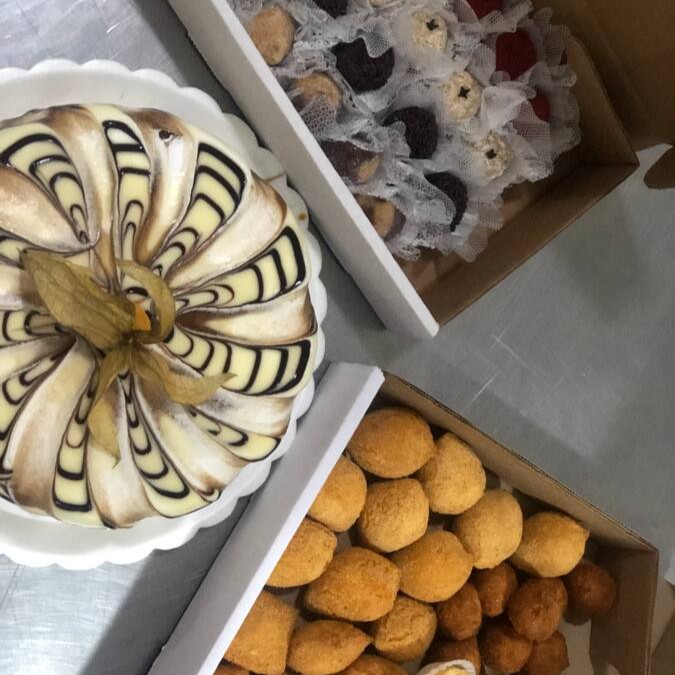 Torta 1,400kg sabor de bem casado + 60 salgados + 40 doces.