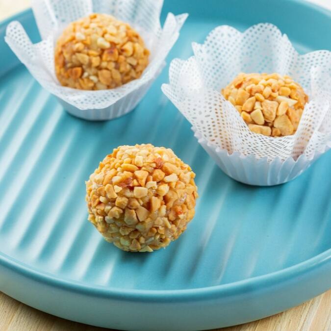 Leite condensado com pedaços de amedoim
