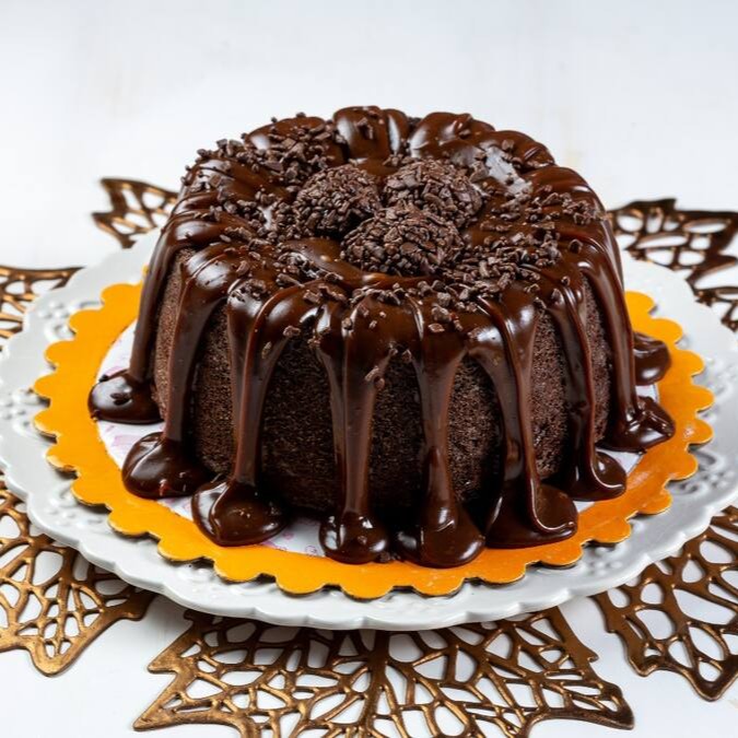Aproximadamento 0,650kg, massa de bolo amanteigada com cobertura de chocolate goumert ou leite Ninho.