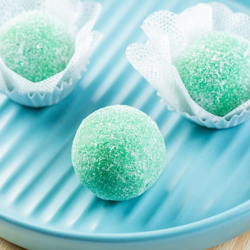Uva fruta, embolada na massa verde, feita com leite condensado.