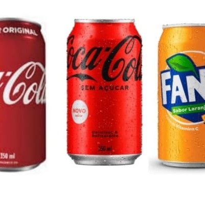 Coca cola Original lata 350ml Coca cola sem açúcar lata 350ml Fanta laranja lata 350ml Sprite Original lata 350ml Guaraná Kuat lata 350ml