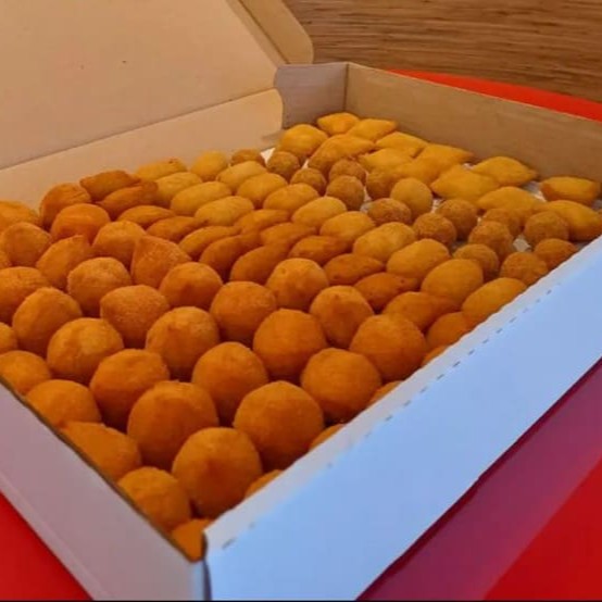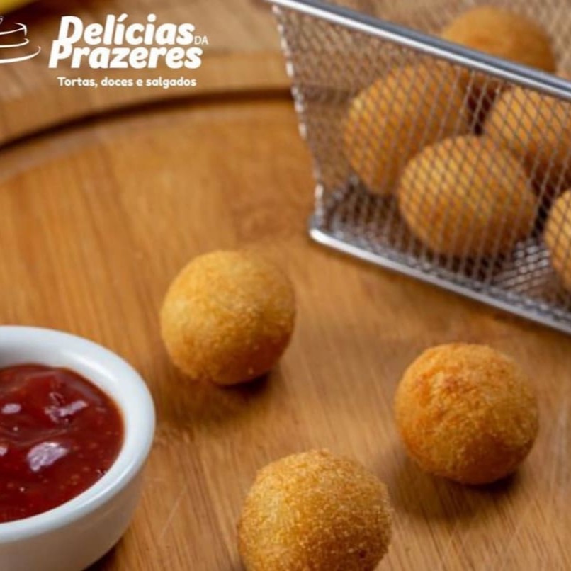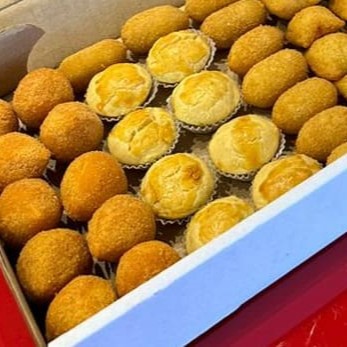 40 Coxinhas, 20 Bolinhos de Bacalhau, 15 Bolinhos Chester, 15 Risoles de Queijo, 10 Bolivianos.