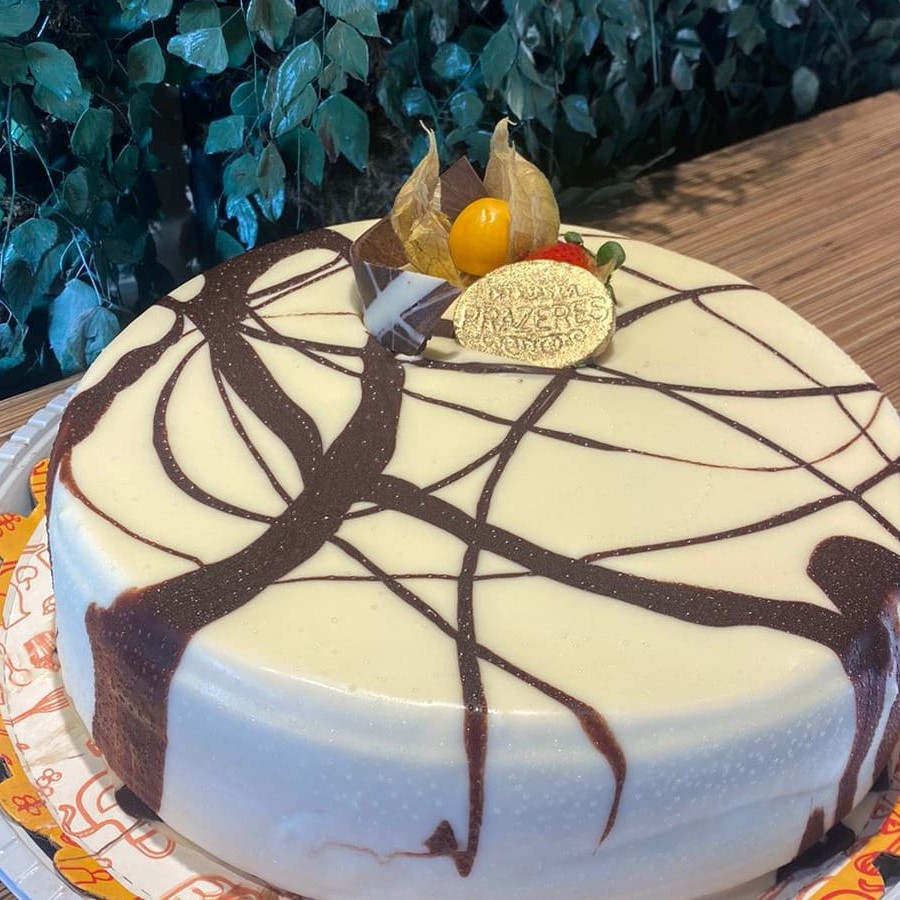 Torta pesa em média de 1kg. Com morango, Cereja ou physalis na decoração.