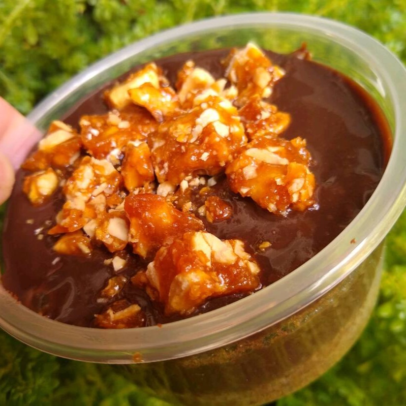 Uma deliciosa base cremosa com pedacinhos de paçoca.