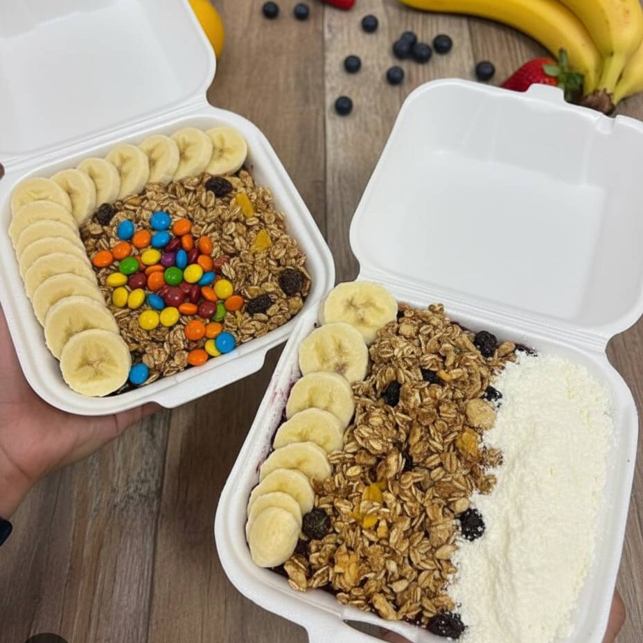 Leve dois açaí caprichado e escolha quatro complementos de sua preferência.Aprox. 300g Obs: O mesmo complementos para os dois.Não enviamos os adicionais separados!
