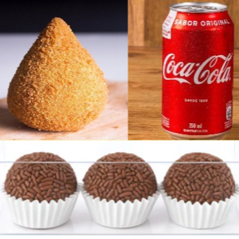 Combo Doce & Salgado Perfeito – 1 Coxinha De Frango + 1 Coca Lata + 3 Brigadeiros