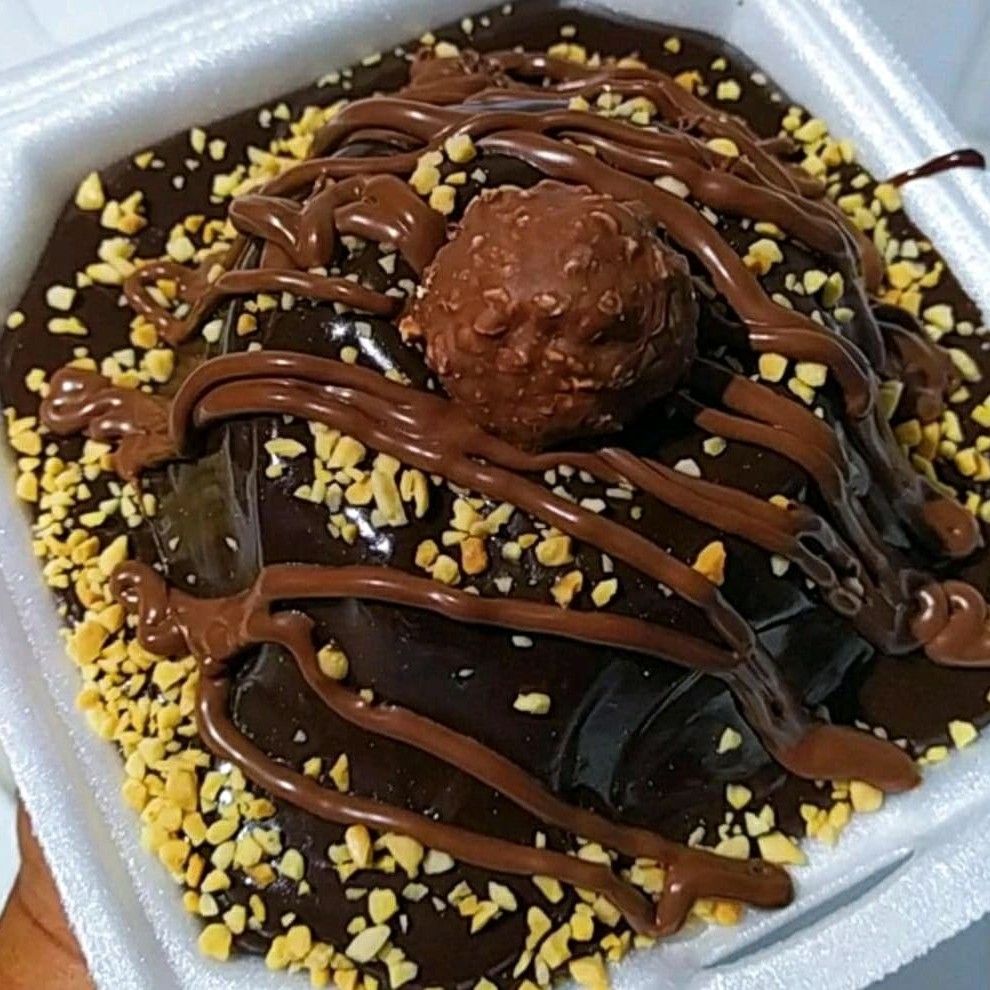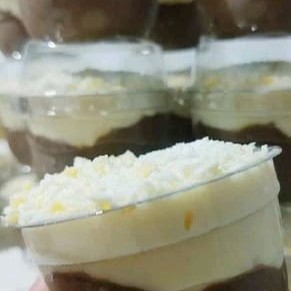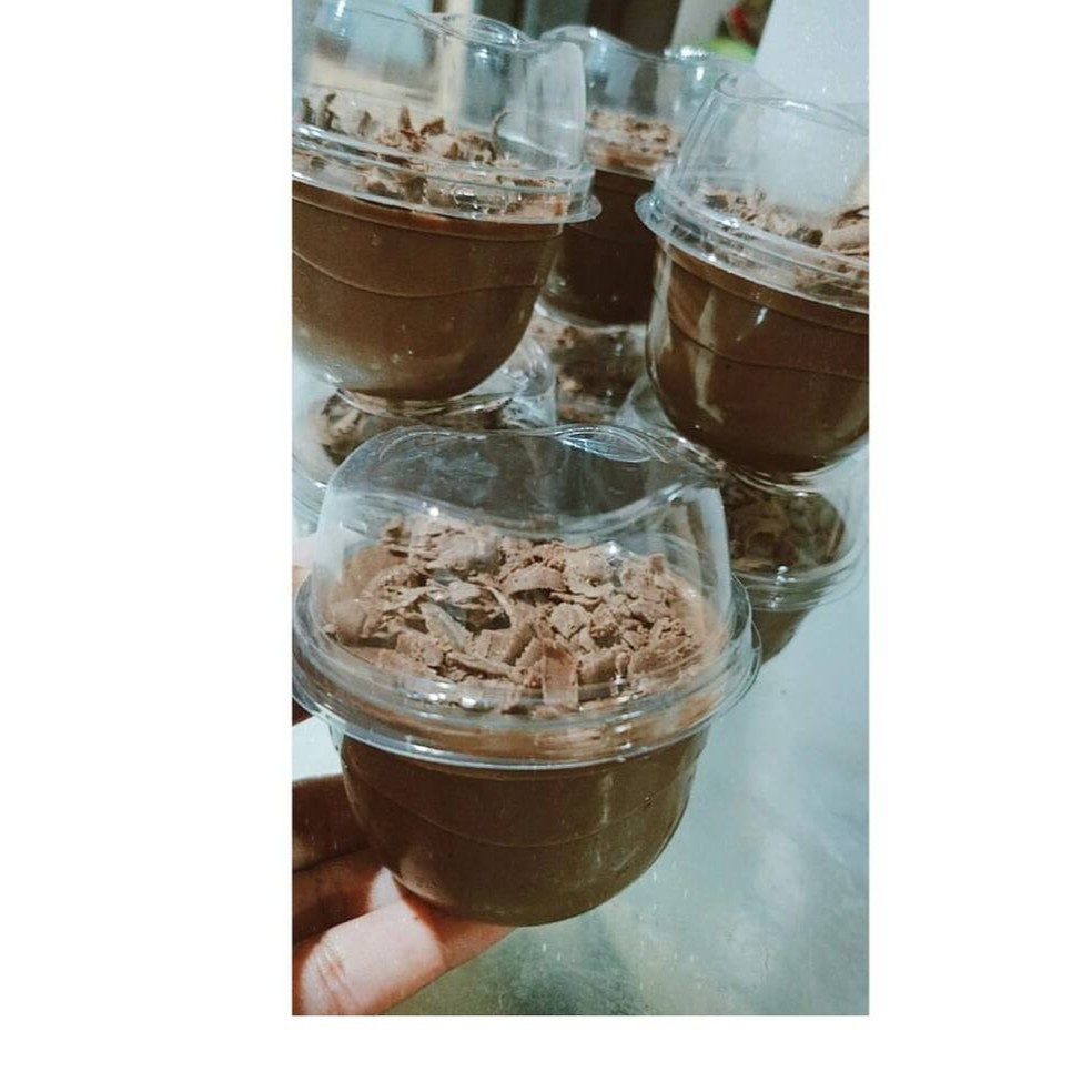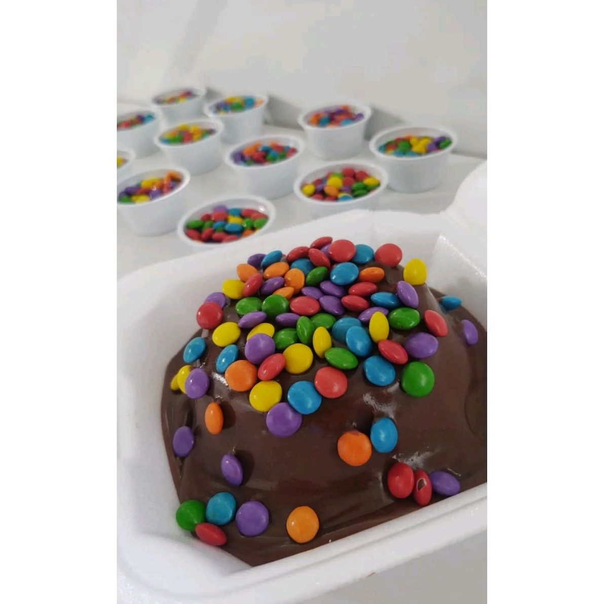 Massa de chocolate molhadinha , creme de brigadeiro maravilhoso , raspas de chocolate para decorar . Pote 200ml
