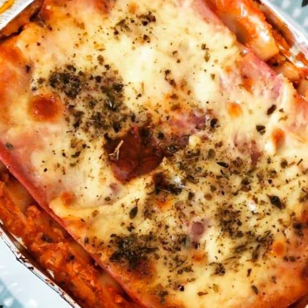 Carne de patinho moída, preparada com molho artesanal caseiro, camadas generosas de queijo mussarela e queijo ralado, polvilhadas com orégano aromático. Tudo isso intercalado com massa especialmente preparada para lasanha, garantindo textura e sabor perfeitos.