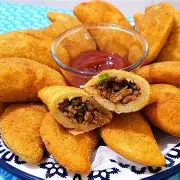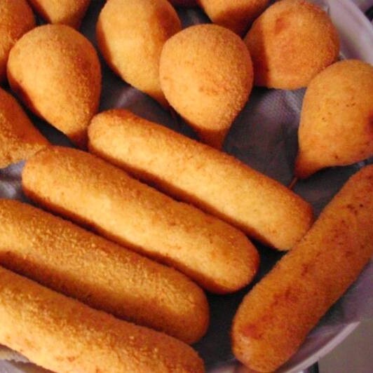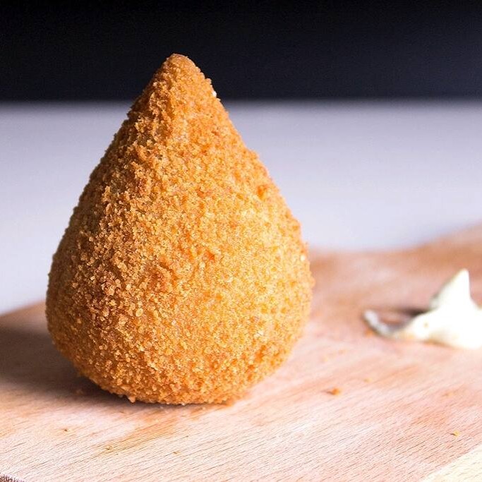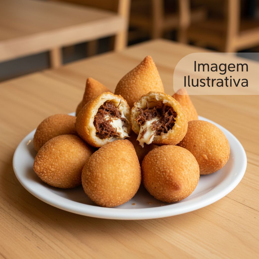 Coxinha recheada com carne seca suculenta e requeijão cremoso.