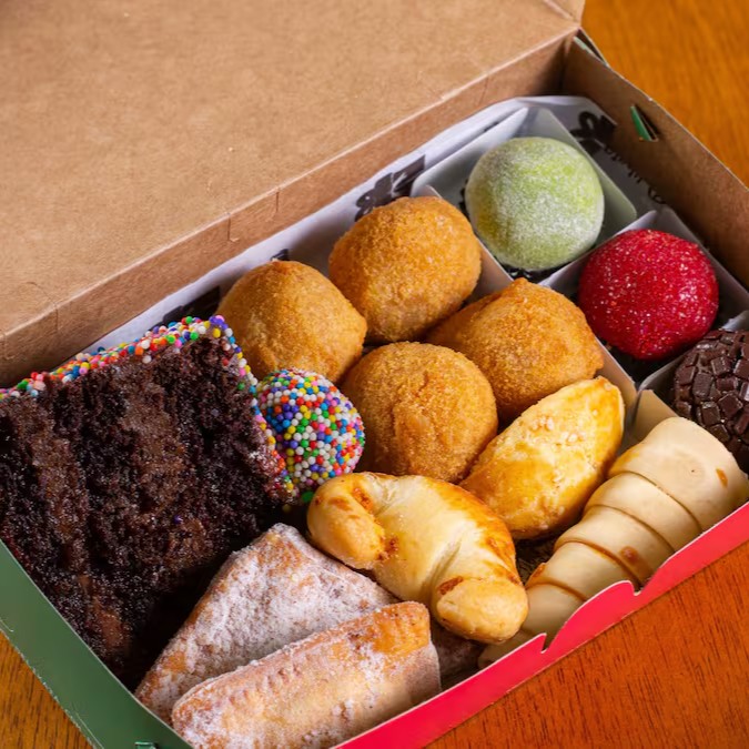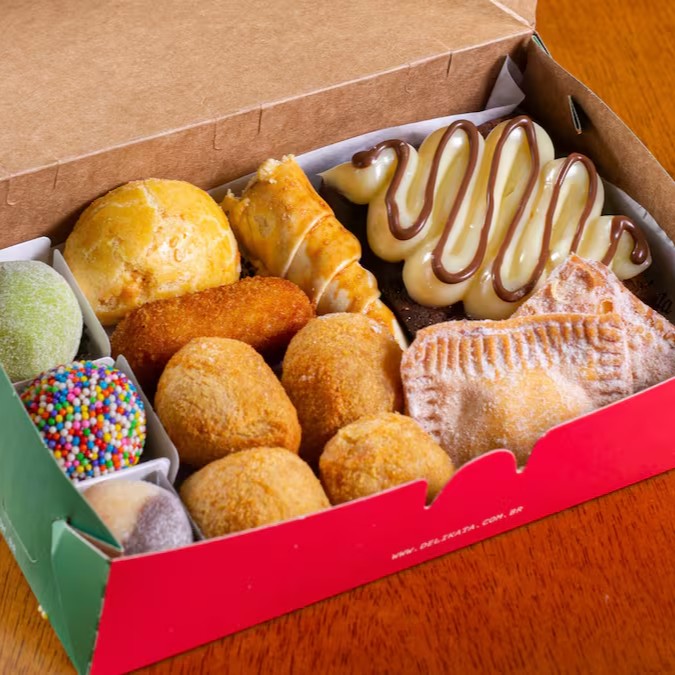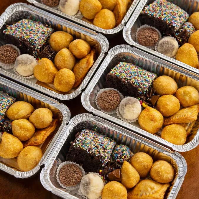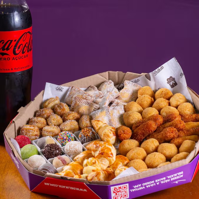 Escolha 70 itens entre 10 doces e 60 salgados do jeito que quiser para dividir com a turma ou comer tudo sozinho e leve um refrigerante de 2 litros Grátis