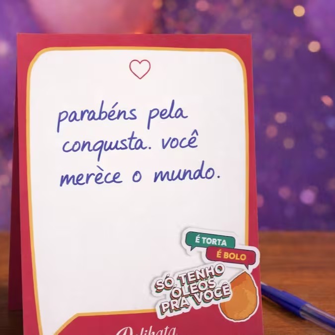 Bilhete em papel de carta personalizado (tamanho 15x10cm) para enviar junto com seu pedido. Escreva sua frase de até 30 palavras nas observações. Frases maiores que o limite serão resumidas automaticamente, hein? Usaremos caneta azul ou preta.
