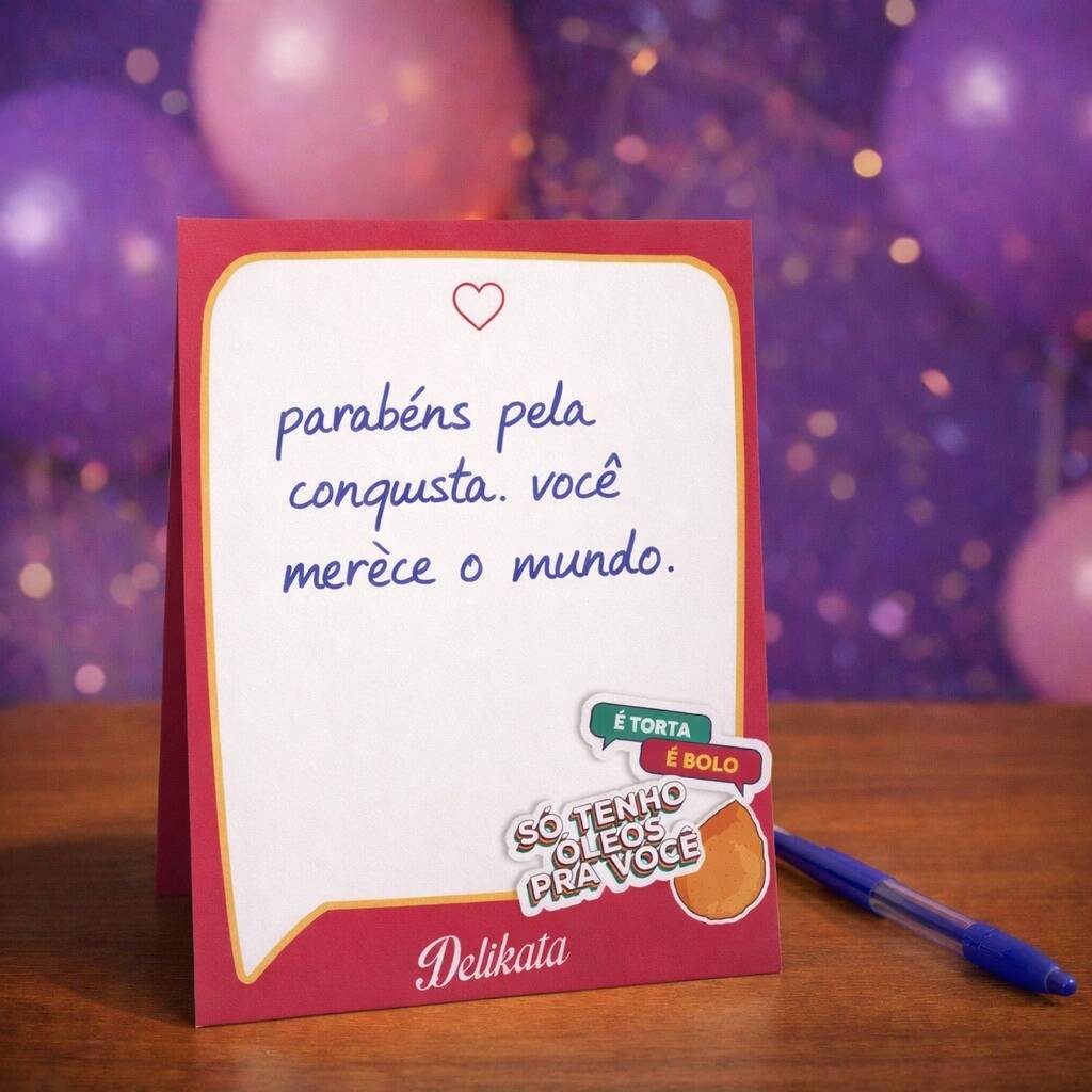 Atenção: informe também o nome do destinatário do pedido para ajudar em nossa entrega. O bilhete será grampeado/colado na embalagem externa ou dentro dela, dependendo da situação. Nos reservamos o direito de não escrever e enviar frases ofensivas.