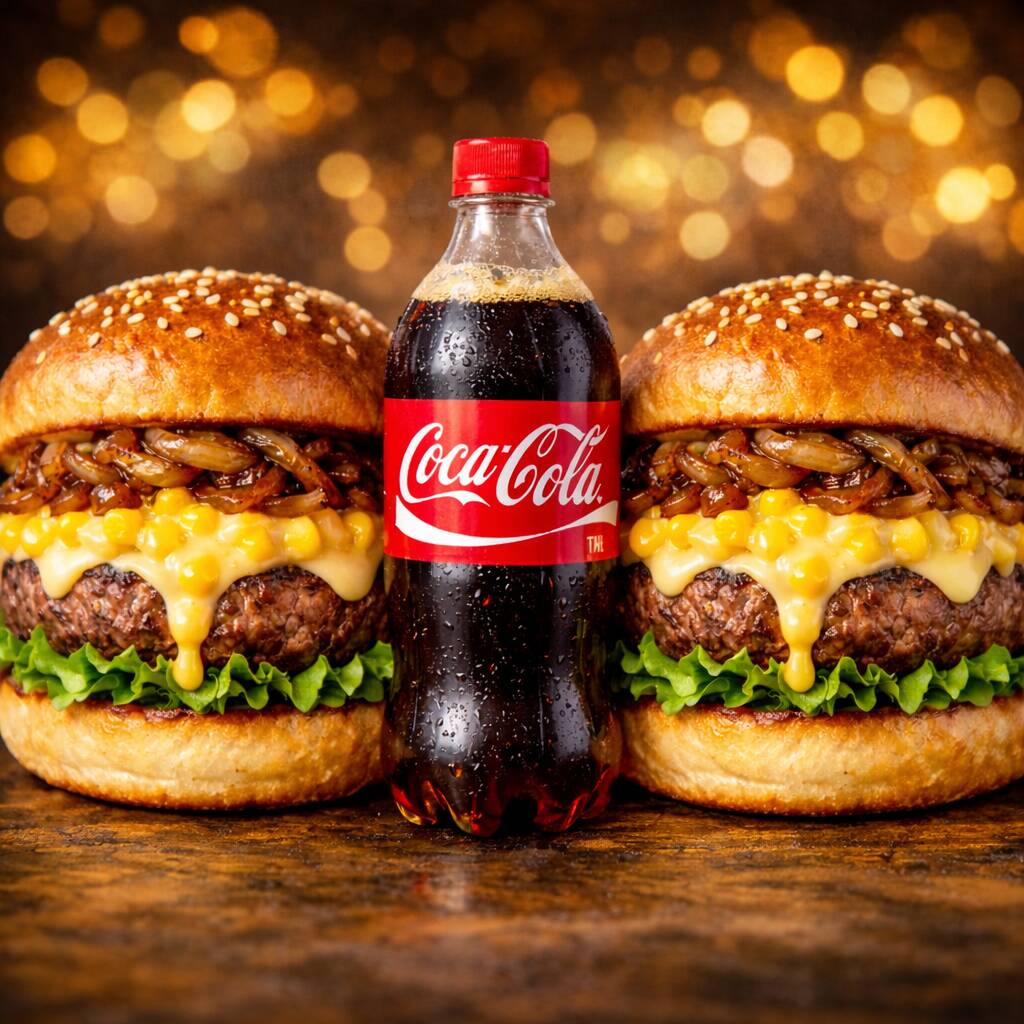 Dois hamburguer da casa, com coca-cola de 1 litro