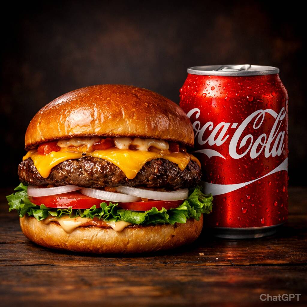 Saboroso X-burguer da casa, com uma gelada coca-cola em lata.