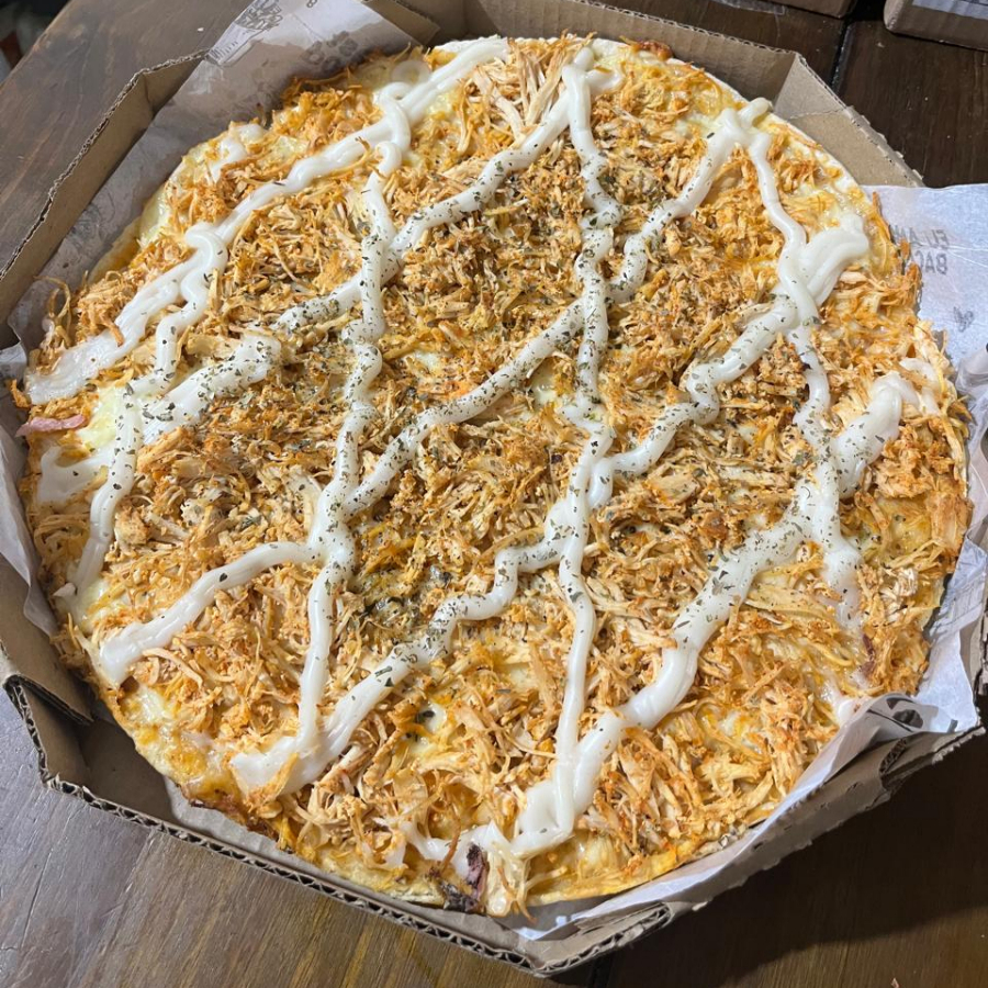 Massa da casa, queijo mussarela, frango, catupiry e oregano
