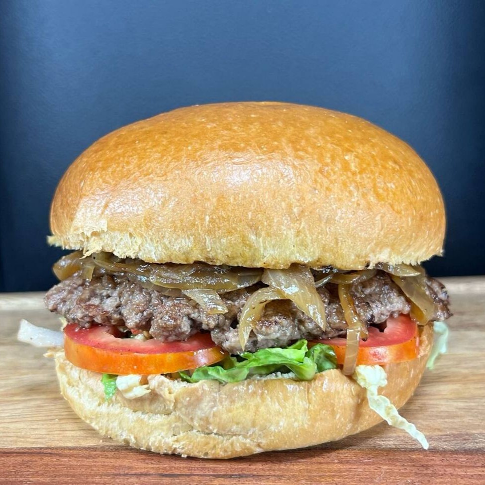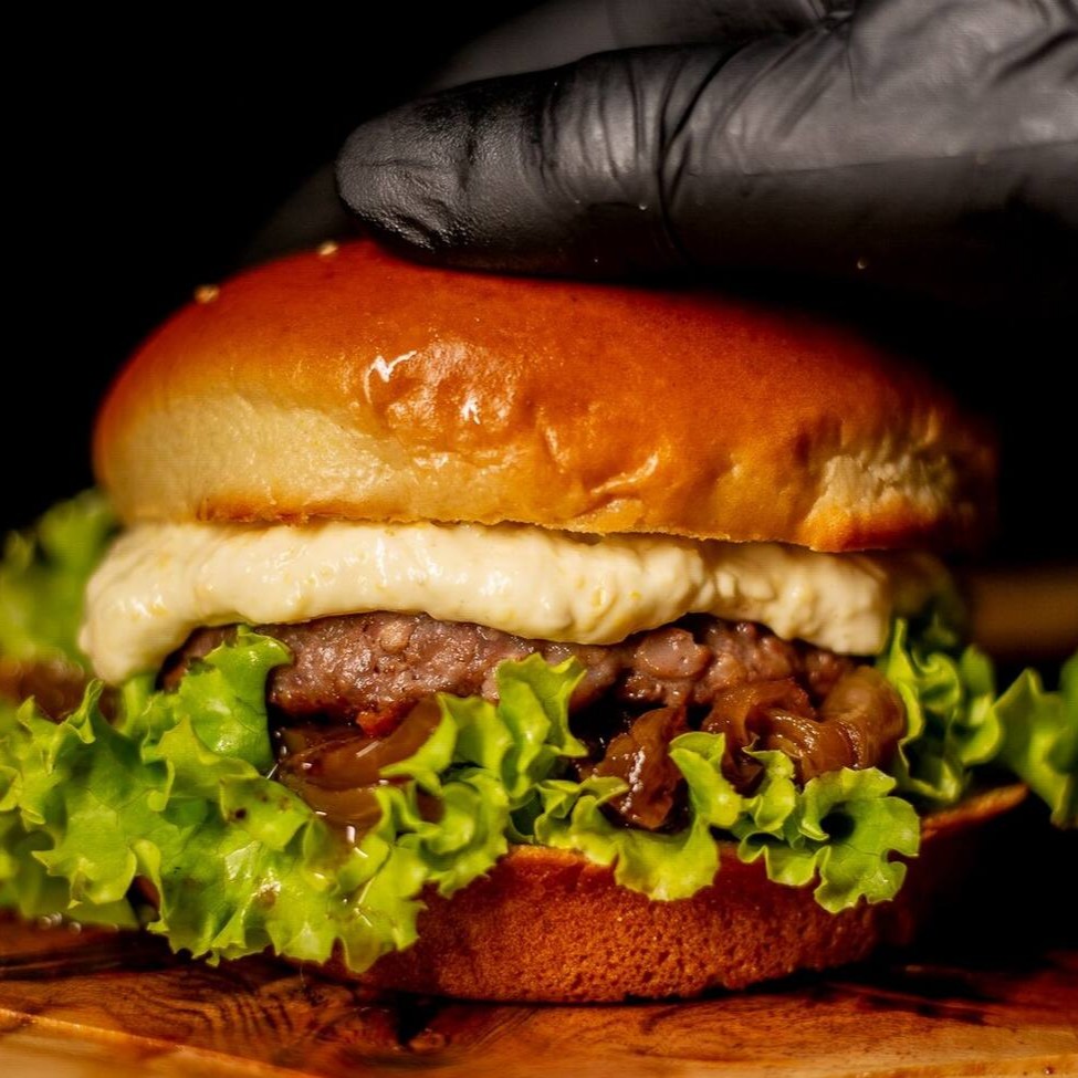 Pão Brioche, Carne Goumert 180g, Queijo Mussarela,Salada E Molhos Especiais.