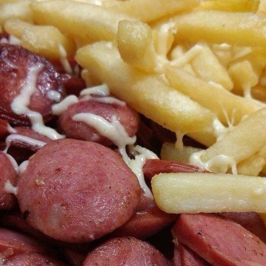 200g Macarrão Espaguete, Molho De Tomate Filé De Carne, Mussarela + Fritas