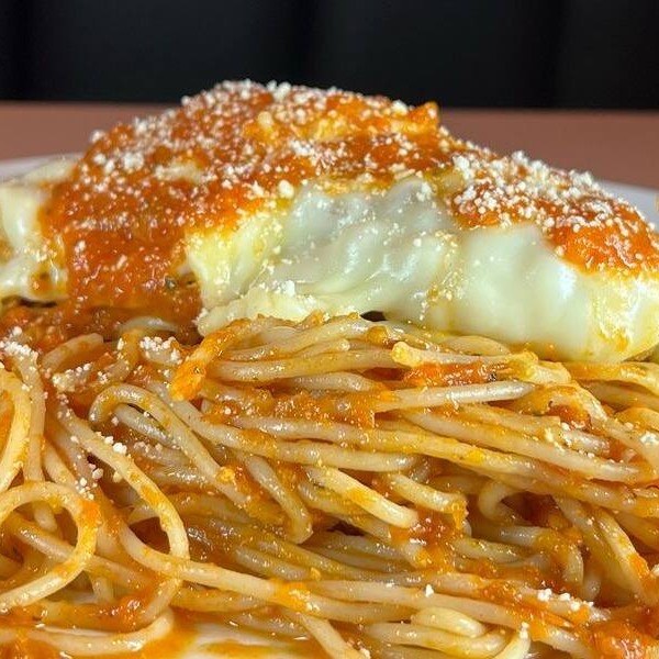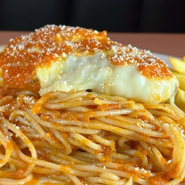 200g Macarrão Espaguete, Molho De Tomate Filé De Peito, Mussarela + Fritas