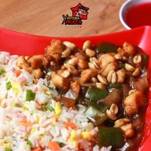 Arroz Chop suey, molho oriental, frango, e legumes em Cuoos. Porção individual 500g