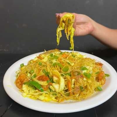 Delicioso Bifum com legumes frescos e refocados, Carne, Frango e filé de camarões cozidos, levemente apimentado. . Acompanha 2saches de shoyu.