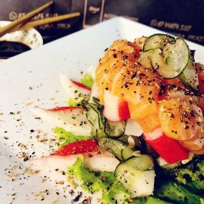 Salada deliciosa de pepino japonês recheadas a sua escolha com 250g e acompanha hashi e shoyus.