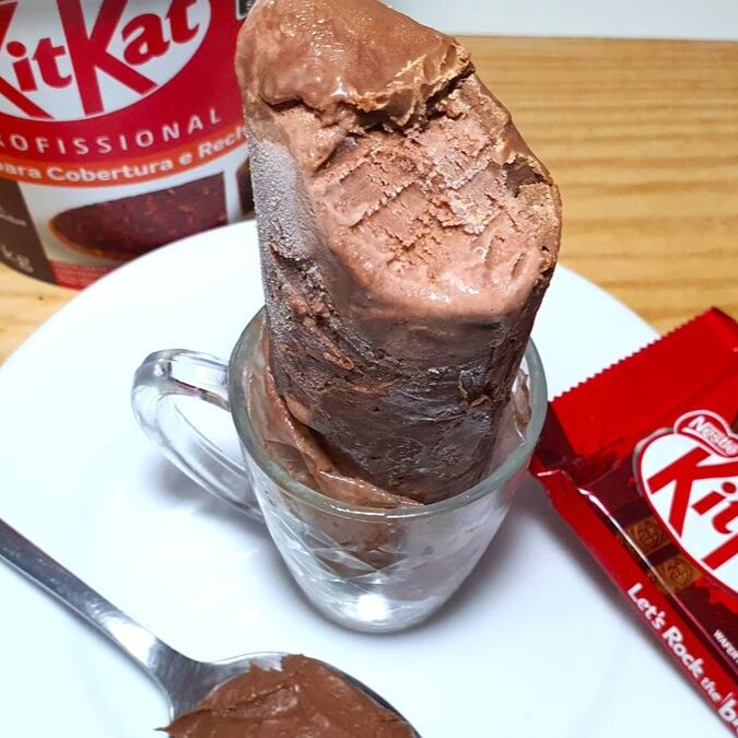 Sorvete cremoso de chocolate e Kitkat com recheio da deliciosa Pasta Cremosa de Kitkat da Nestlé. Nossos geladinhos tem como base ingredientes lácteos de alta qualidade da confeitaria, sem aditivos químicos como liga neutra, emulsificantes ou retardantes de descongelamento, prezando em primeiro lugar pela melhor experiência de sabor ao cliente. **************Tags******************** Leite Ninho, Kitkat, Geladinho gourmet, Sorvete, Picolé, Sobremesa, Doces, Bolos, Entrega rápida, Confeitaria, Docinhos, Brigadeiro, Brownie.