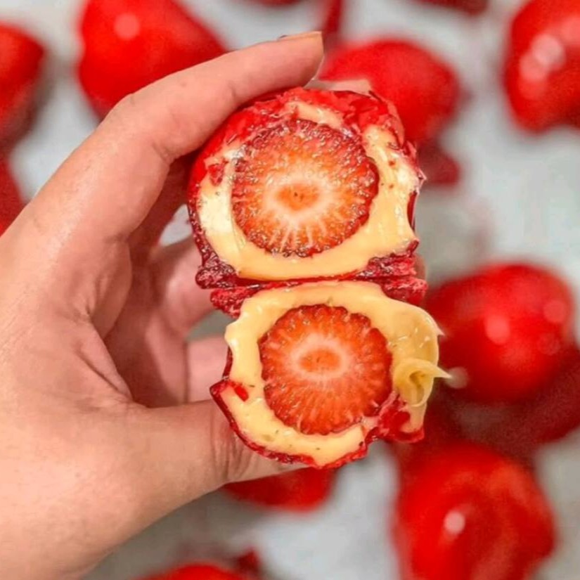 O bombom que virou sensação! Um morango inteiro mergulhado no recheio dos sonhos, envolvido por uma casquinha de chocolate irresistível: