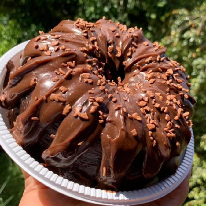 Bolo de chocolate super fofinho, feito com massa bem chocolatuda, coberto com um brigadeiro de chocolate cremoso e finalizado com granulado crocante. Uma explosão de sabor, maciez e chocolate de verdade — impossível comer só um pedaço