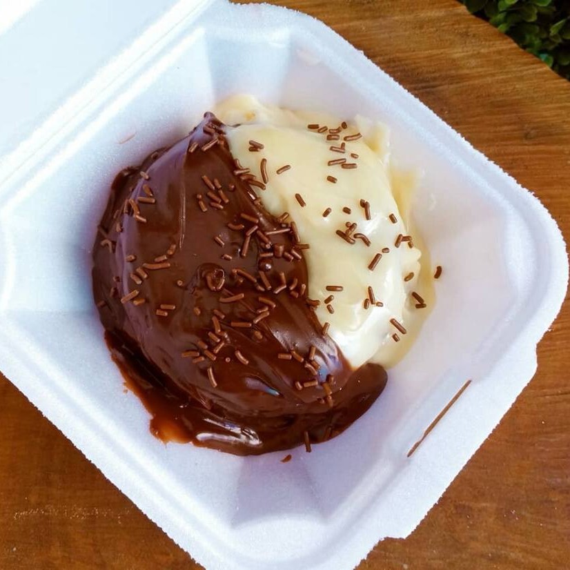 Masssa macia de chocolate, recheio cremoso no centro, cobertura de chocolate ao leite e brigadeiro branco e granulado crocante.