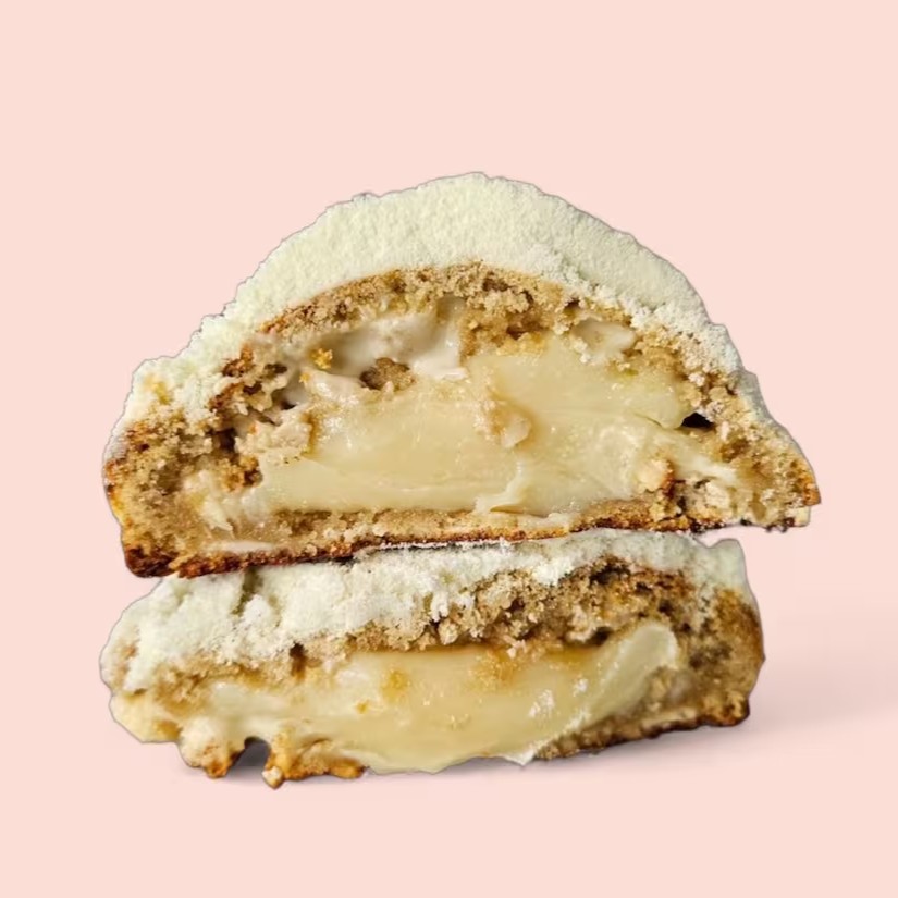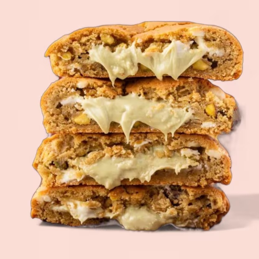Massa de baunilha macia, recheio cremoso de pistache e gotas de chocolate. Assado na hora para ficar irresistível. (110 gramas).