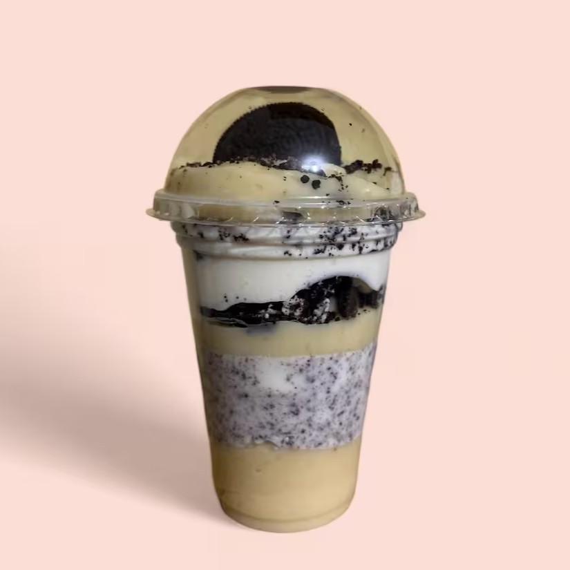 Sobremesa composta por camadas de creme de chocolate branco aveludado, creme de Oreo cremoso, brigadeiro branco delicado e pedaços crocantes de biscoito Oreo. Para finalizar, uma generosa cobertura de biscoito Oreo triturado. (Copo 250 ml).