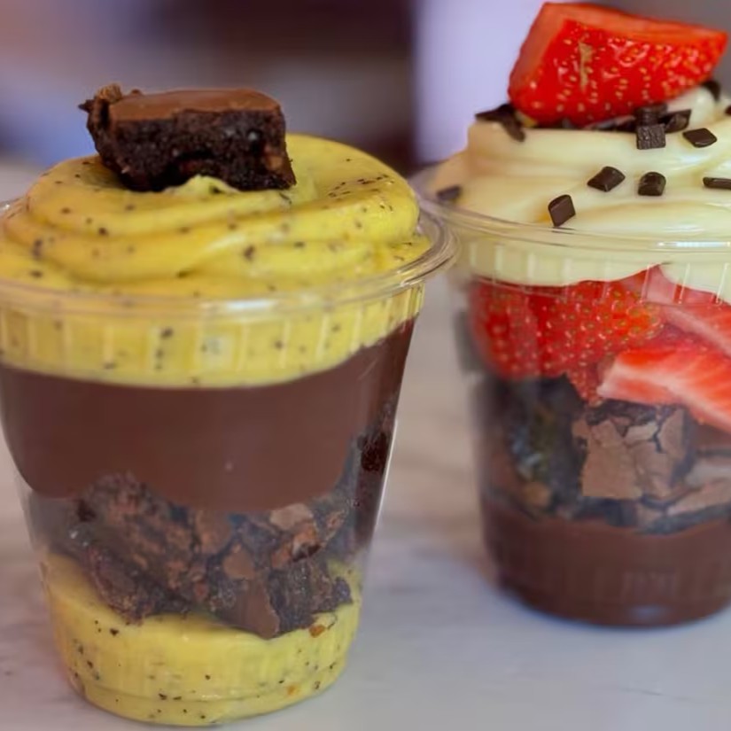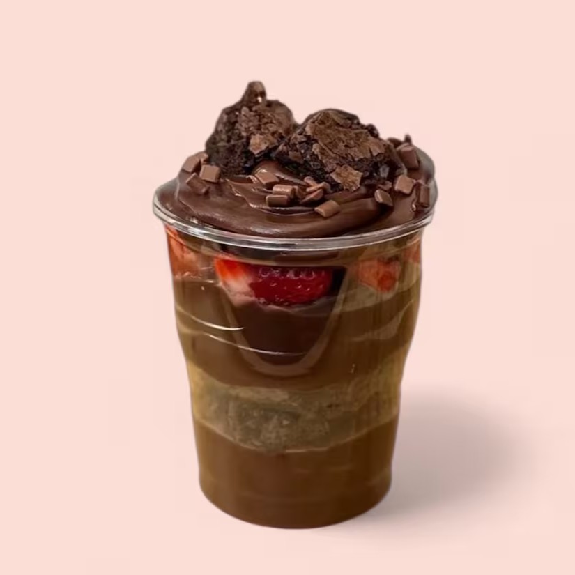Brownie macio e chocolatudo, cookie crocante com gotas de chocolate por cima e um recheio incrível no meio. Escolha o seu favorito e aproveite essa delícia! (Marmita 250 ml)