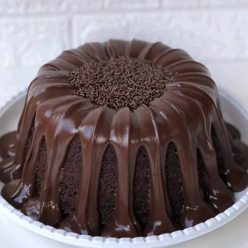 Bolo Vulcão com deliciosa massa de chocolate, recheio de cobertura de chocolate e finalizado com granulado. (Aprox. 1,000 kg).