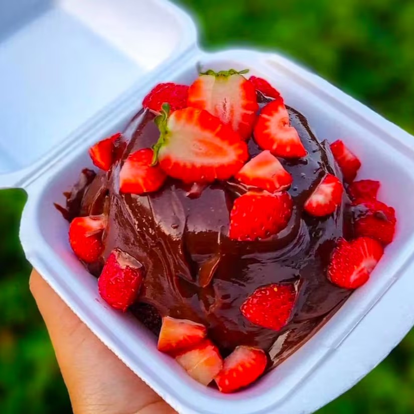 Delicioso Brownie com cobertura a sua escolha na marmitinha. (250 ml)