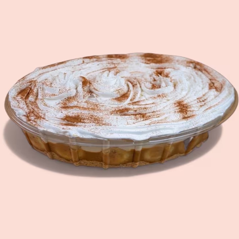 Travessa especial com farofinha de biscoito amanteigado, banana fresca, doce de leite cremoso e chantilly leve com toque de canela. (Aprox: 2 Kg).