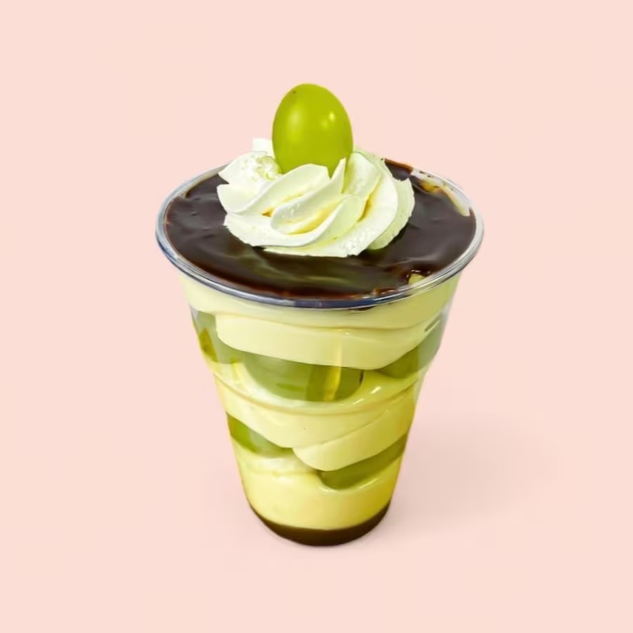 Bombom de uva, composto por um suave creme de Ninho, uvas sem sementes, brigadeiro branco e brigadeiro meio amargo. (Pote 250 ml).