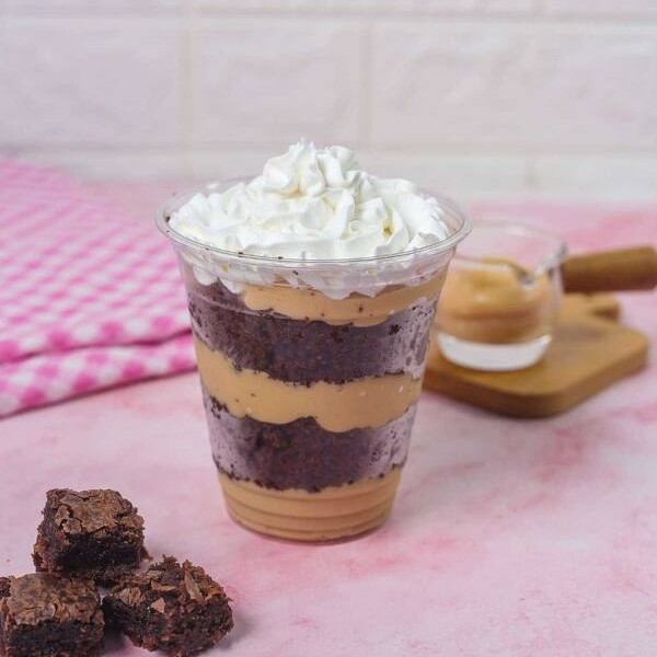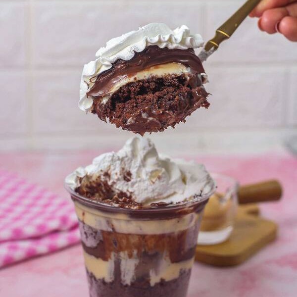 Três camadas de massa de brownie + três camadas do nosso delicioso creme de Ninho, finalizado com chantininho.