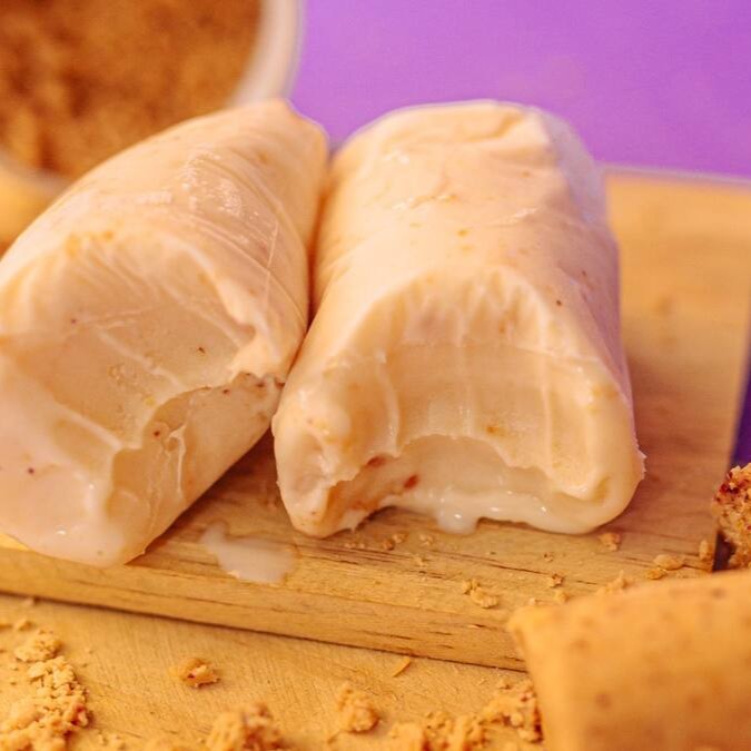 Produzido com pedaços de paçoca, aquele gostinho delicioso de amendoim.
