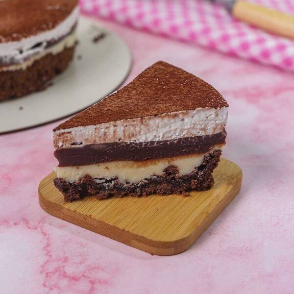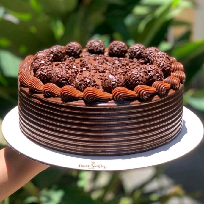 Três camadas de massa molhadinha de chocolate + três camadas do nosso delicioso creme de chocolate 50% cacau, finalizado com chantininho.