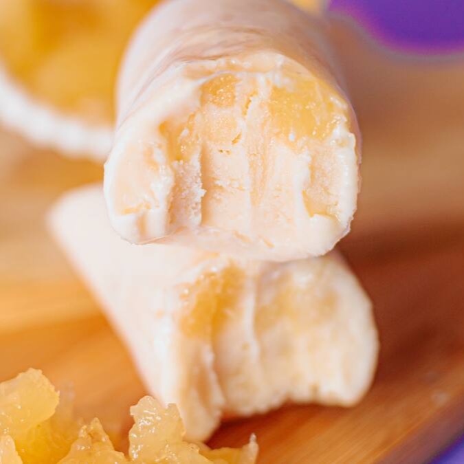 O verdadeiro sabor da sobremesa com pedaços de doce de abacaxi, refrescante e inigualável.