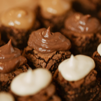 Pedaços de brownie com cobertura e farofa de sua escolha, para compartilhar!
