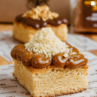 Brownie de chocolate branco combinado com o doce de goiabada, uma delícia! Para finalizar, uma generosa pitada de farofinha doce é acrescentada, proporcionando um contraste de texturas irresistível!