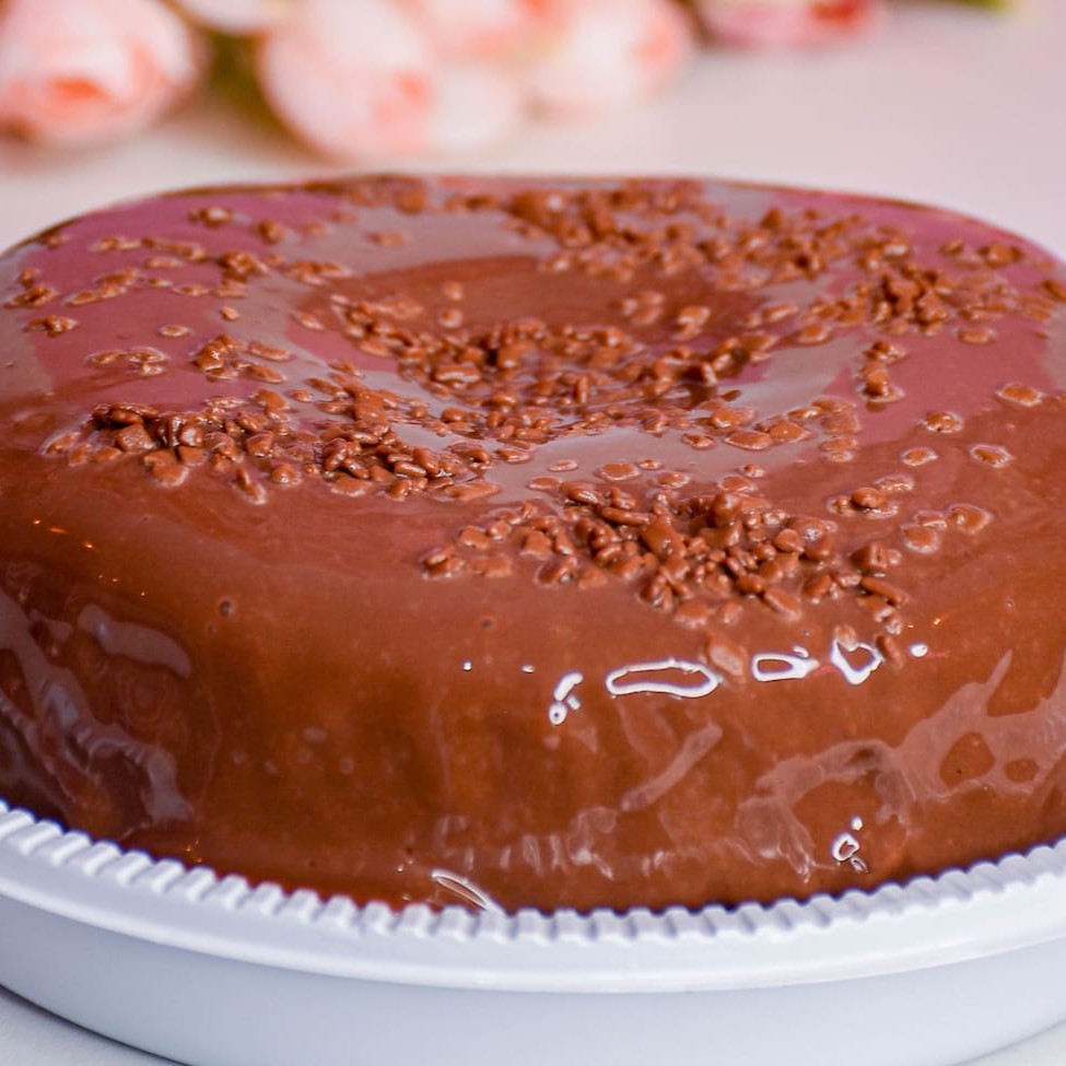 Massa de chocolate molhadinha com cobertura cremosa de chocolate. Pesa entre 600g e 700g