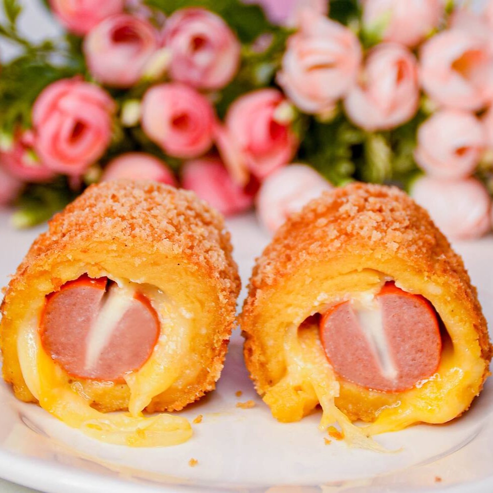 Deliciosa massa macia por dentro e crocante por fora recheada com salsicha, queijo mussarela e Catupiry®