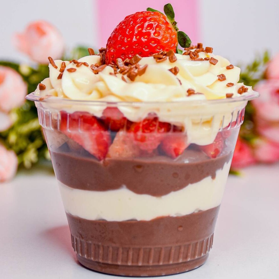 Nosso copo sensação vai adoçar o seu dia de uma forma inesquecível! Com camadas do nosso inconfundível creme de chocolate 50% cacau, mousse de leite Ninho intenso e morangos frescos suculentos. Uma combinação incrível de texturas e sabores diferentes que você vai se apaixonar! Aproximadamente 240g