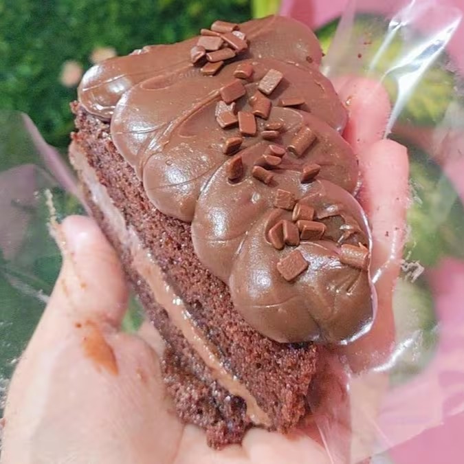 Fatia de bolo bem chocolatuda, recheada e finalizada com muito creme de chocolate. Para completar, recebe uma camada generosa de granulé belga para um sabor mais intenso e sofisticado.