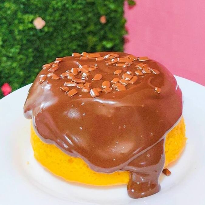 Caseirinho recheado no centro com brigadeiro artesanal, e também finalizado com uma cobertura de brigadeiro artesanal cremoso quentinho Chocolatudo e Granule belga, trazendo uma explosão de sabor.