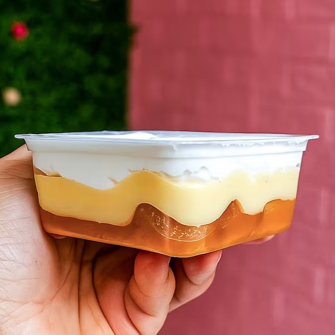 Sobremesa cremosa com camadas de abacaxi suculento, creme branco leve e toque especial de sabor tropical. Uma delícia refrescante para adoçar seu Dia!