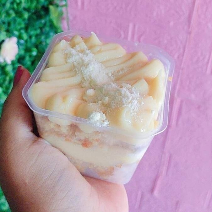 Massa fofinha e molhadinha de baunilha, recheada com brigadeiro ultra cremoso de leite Ninho, finalizado com leite Ninho em pó.