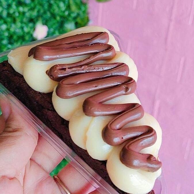 Brownie macio coberto com brigadeiro cremoso de Leite Ninho e finalizado com Nutella Original derretendo na boca. Uma fatia irresistível de 100g a 150g!!